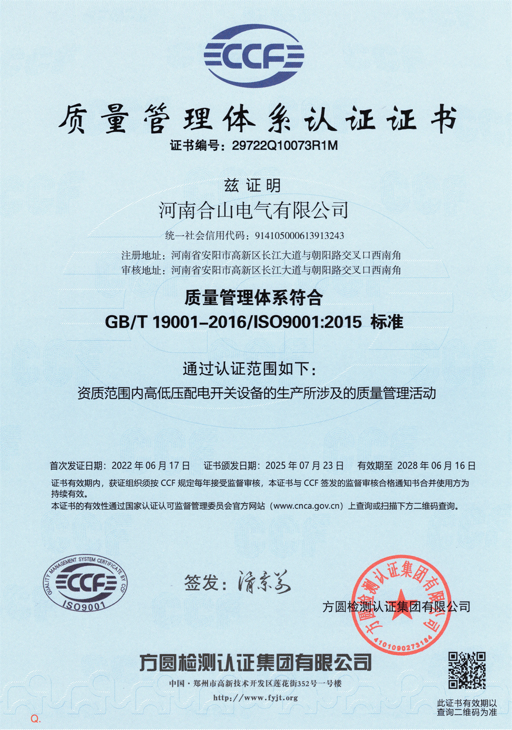 質(zhì)量管理體系認(rèn)證證書